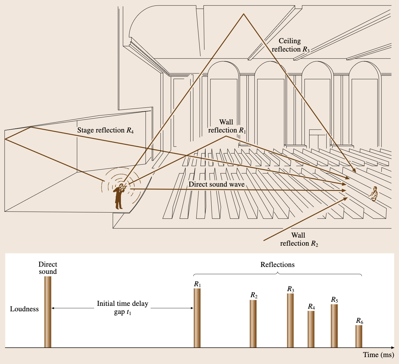 - Early reflections: Discrete echoes that arrive shortly after the direct sound